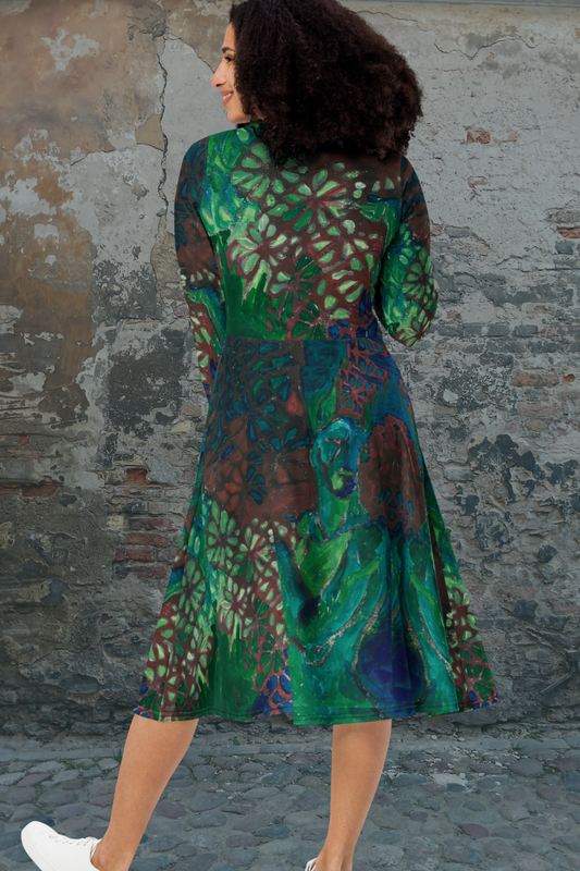 The Great Green. All-over print long sleeve midi dress